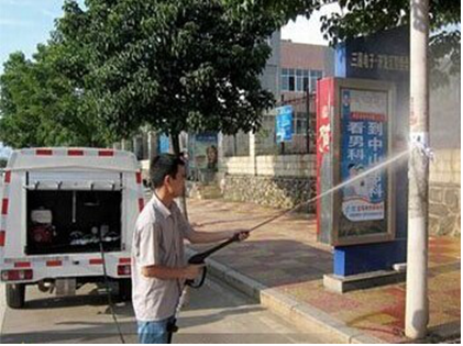 3、配置手動(dòng)噴槍裝置、手推式噴管清洗裝置,可清洗小廣告、人行步道、路沿廣告牌等各類(lèi)公共設(shè)施,方便小巧靈活操作。配置耐高壓的手持噴槍用于清洗較臟的油污地面,及牛皮癬廣告等作業(yè)時(shí)系統(tǒng)水壓。