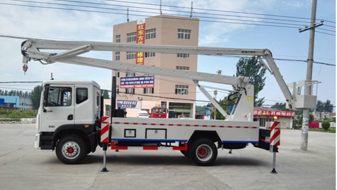 東風(fēng)D9型多利卡20米高空作業(yè)車采用折疊式曲臂結(jié)構(gòu),作業(yè)臂為三節(jié)折疊式,工作斗和轉(zhuǎn)臺雙工作位,上下操作,液壓手動控制,可360度回轉(zhuǎn),四液壓支腿,帶1噸吊鉤,工作斗大承重200公斤,鋼制工具箱及圍板、花紋防滑走臺板。