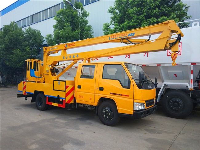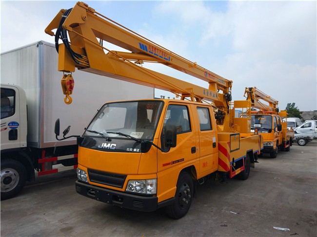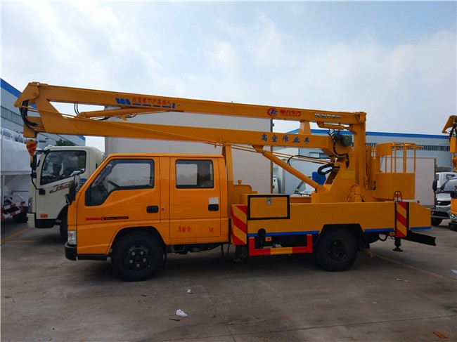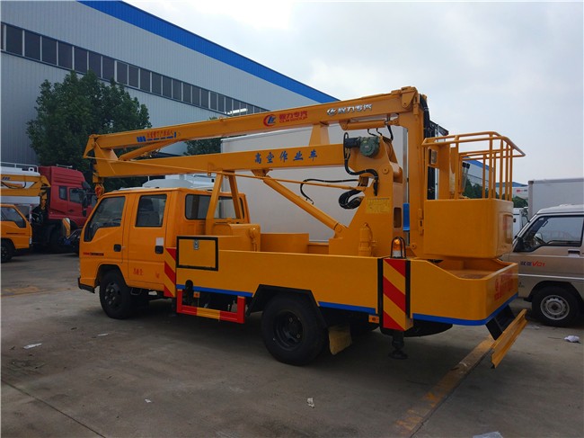 江鈴順達(dá)12米、14米、16米高空作業(yè)車采用折疊式曲臂結(jié)構(gòu),作業(yè)臂12米為兩節(jié)折疊式,14米16米為三節(jié)折疊式,工作斗和轉(zhuǎn)臺(tái)雙工作位,上下操作,液壓手動(dòng)控制,可360度回轉(zhuǎn),四液壓支腿,帶1噸吊鉤,工作斗大承重200公斤,鋼制工具箱及圍板、花紋防滑走臺(tái)板。