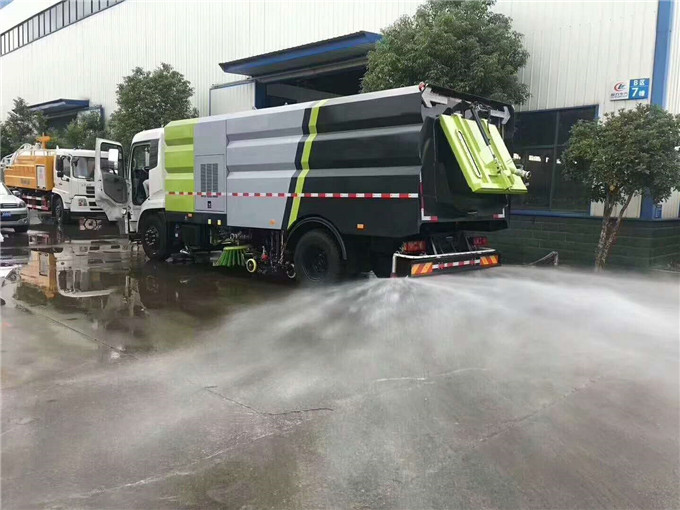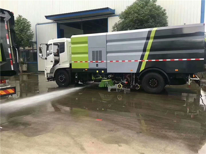 ? 洗掃車采用東風(fēng)天錦DFH1180EX8型國六二類汽車底盤改裝,加裝副發(fā)動機、風(fēng)機、高壓水泵、清水箱、垃圾箱、左右立掃、帶噴水桿的寬吸嘴、低壓沖洗系統(tǒng)、掃盤降塵系統(tǒng)、液壓系統(tǒng)、專用裝置電控系統(tǒng)和副車架等改裝而成。